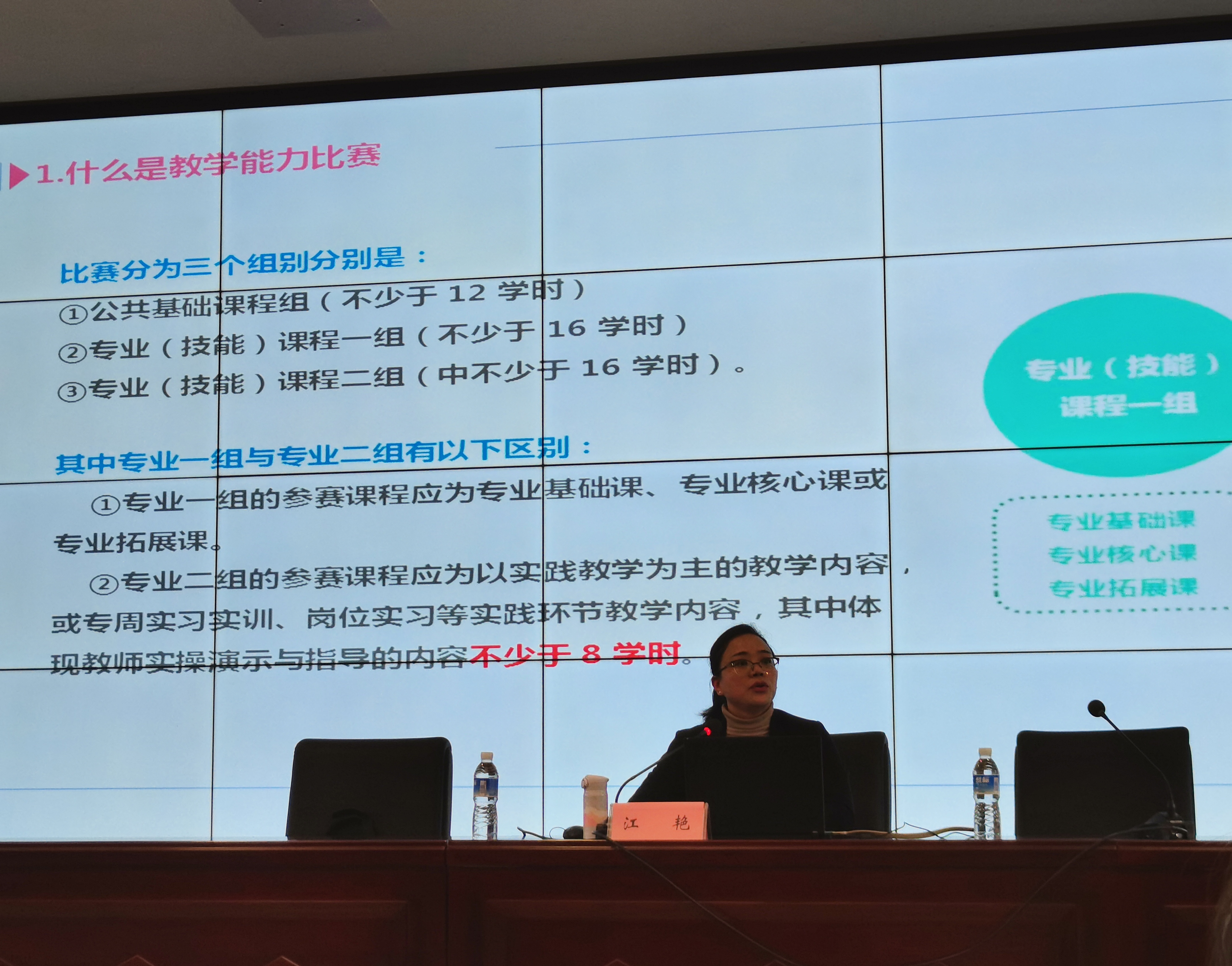 为进一步推进学院教育教学改革,提升学院教师教育教学整体水平,3月14日下午,教务处组织全院教师听取了由江西师专党委委员、宣传部长江艳副教授主讲的“教学能力比赛经验分享”专题讲座。