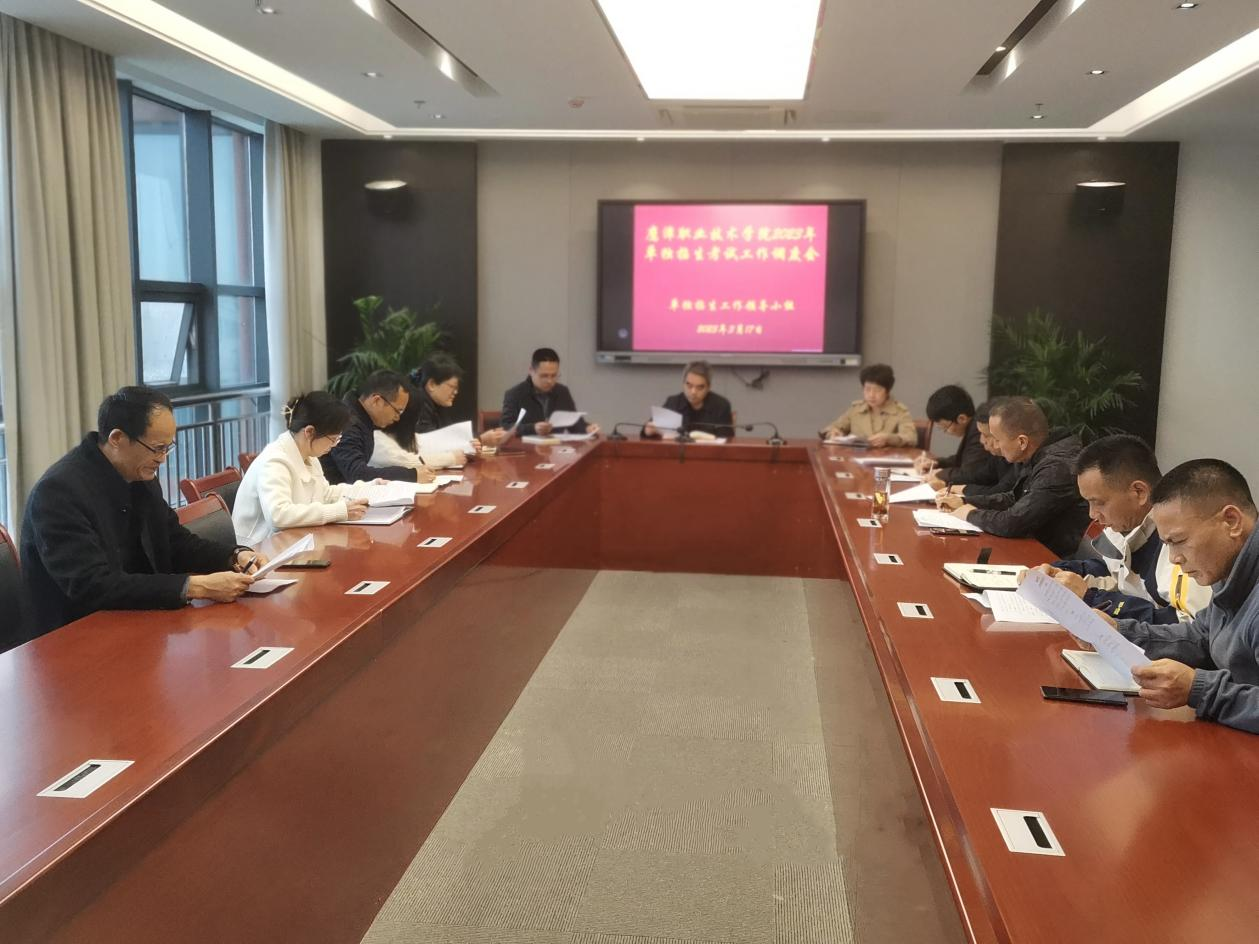 副院长王捷主持会议,学习传达省教育考试院关于做好2023年高职单招考试工作的提示,并就考试接待工作作了具体布置,对考试接待工作的各个环节提出明确要求,对有关考试的信息发布作了具体布置。