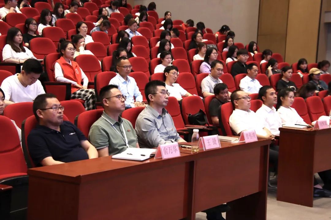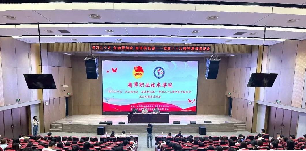5月4日下午,beat365与共青团鹰潭市委在学术报告厅联合举办“学习二十大 永远跟党走 奋进新征程”校园宣讲报告会,党的二十大代表、“全国优秀共产党员”、贵溪法院党组成员、泗沥法庭庭长周淑琴受邀主讲。报告会由校党委书记曾传鸿主持。共青团鹰潭市委书记刘辉斌、副书记刘建、罗琦,学校领导班子成员,师生代表共计300余人参加。